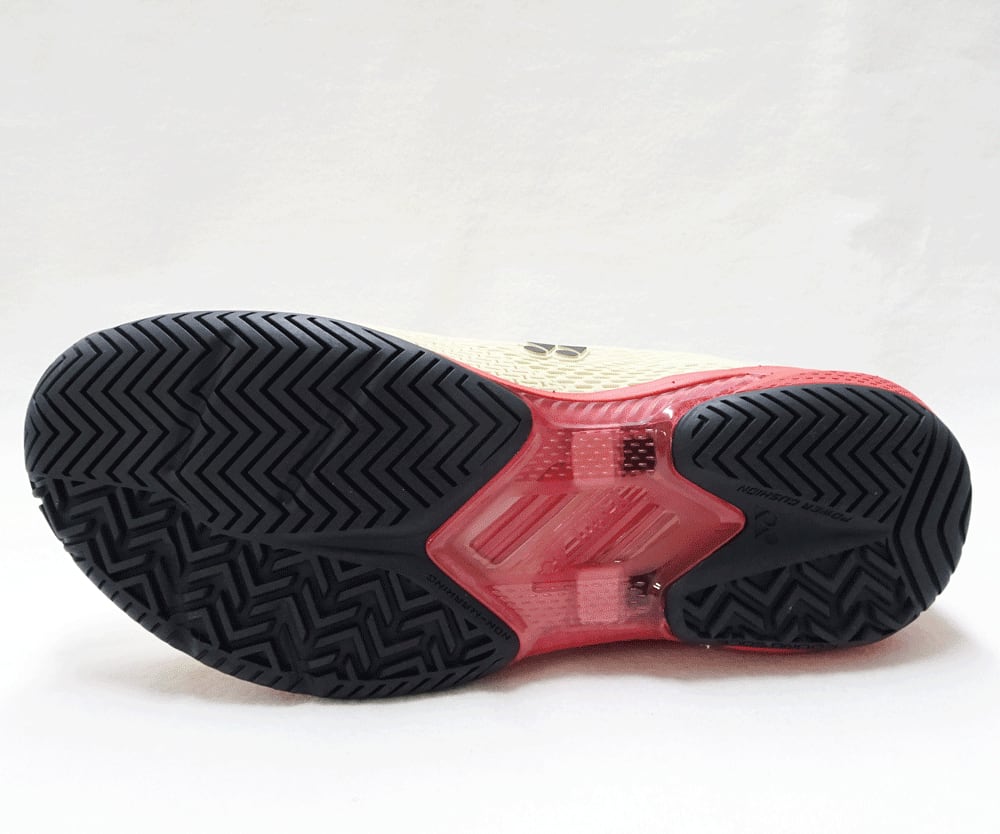 ソールにカーボンプレート内蔵、新形状シャンクと反り上げたつま先形状が生み出す瞬発力で素早くコートを駆け巡る。オールコート用。